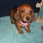 My website has changed a little. If you Click on the title of the post above photo the Puppies, it will bring you to a new page and show you more pictures of that puppy. I like to post several pictures of each Puppy, so you can watch it grow from just after he or she is born, until he is picked up by his new Parents. I want prospective buyers, and people that have already placed a Deposit down on one of my lovely Dachshund Babies, to see how the little guy or girl is growing each week. If you are interested in a puppy, just call me, or email me, and let my know. I just require a $300 Non-Refundable Deposit to hold the puppy until it is ready to be picked up. This $300 Deposit can be paid by a personal check or money order, made out to” Patti Gann”. Please mail the Deposit to : Patti Gann, P.O. Box 368, Arlington, AL, 36722. If you ever have any questions about one of the puppies, or any thing you might want to know about Miniature Dachshunds, call me. I may not know the answer, and if I don’t I will refer you to someone who will know. I love all my Dachshunds, and love to talk about them.