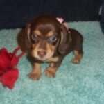 This sweet Puppy was born on 6-7-25 and will go to her new home on 8-2-25. She is AKC Registered, Health Guaranteed, with Full Breeding Rights, and is $1900. Her Mom, Mia, is a Black and Tan weighing about 9 lbs. Her Dad, Samson, is a Longhair Cream Piebald weighing about 11 lbs. This little… Read more »