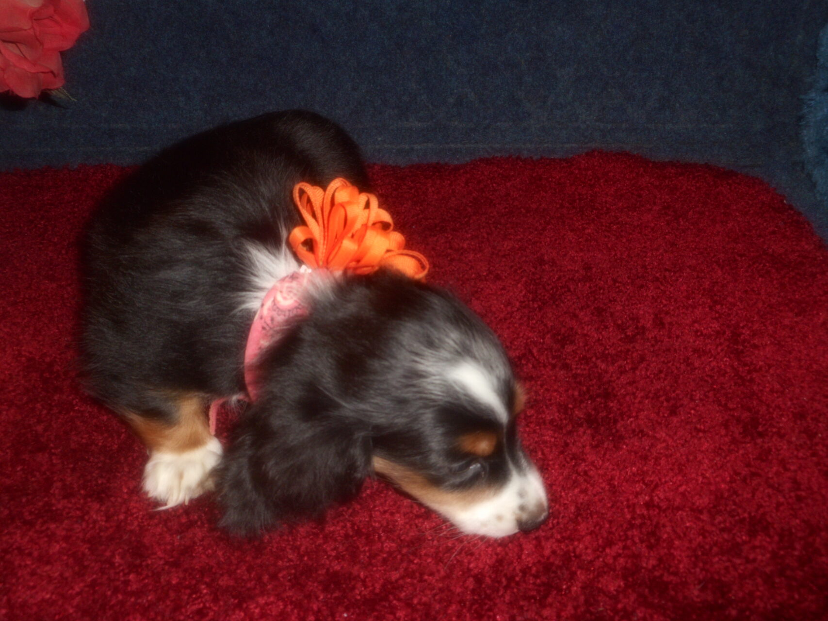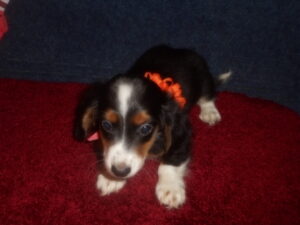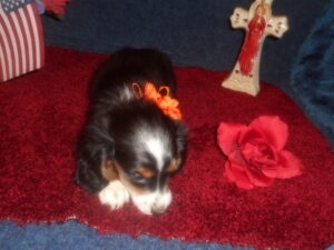 This beautiful little girl was born on 5-4-25 and can go to her forever home on 6-29-25. She is AKC and CKC Registered, Health Guaranteed, with Full Breeding Rights, and is $1950. Her Mom, Gabby, is a Longhair Chocolate and Tan Piebald marked similar to this little girl and weighs about 10 lbs. Her Dad, Samson, is a Longhair Cream Piebald, weighing about 11 lbs. This little girl will definitely grow up to be a gorgeous Dog.