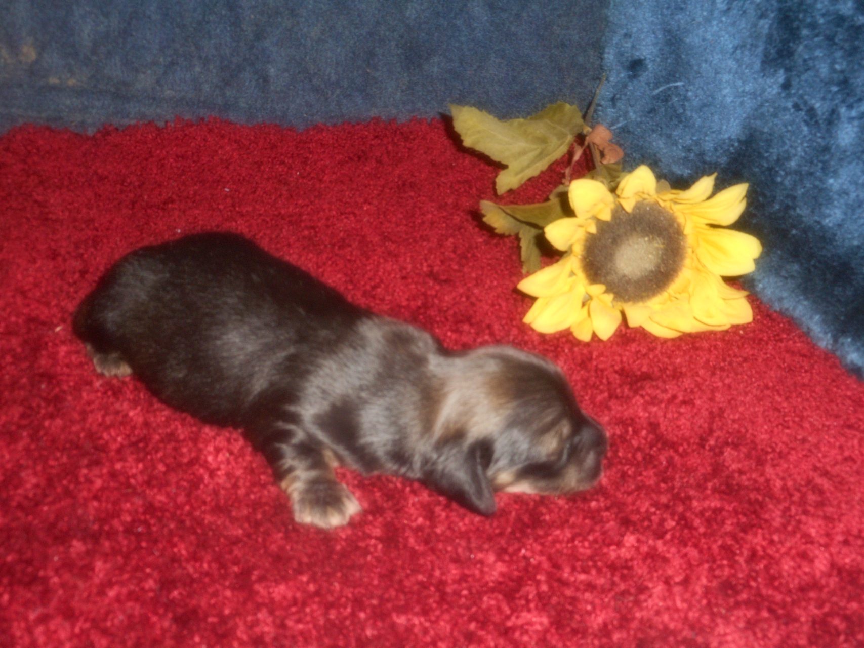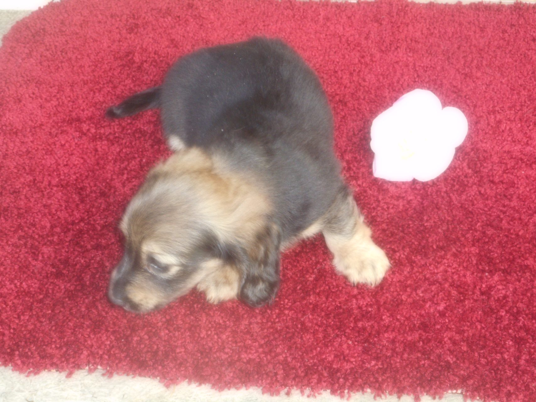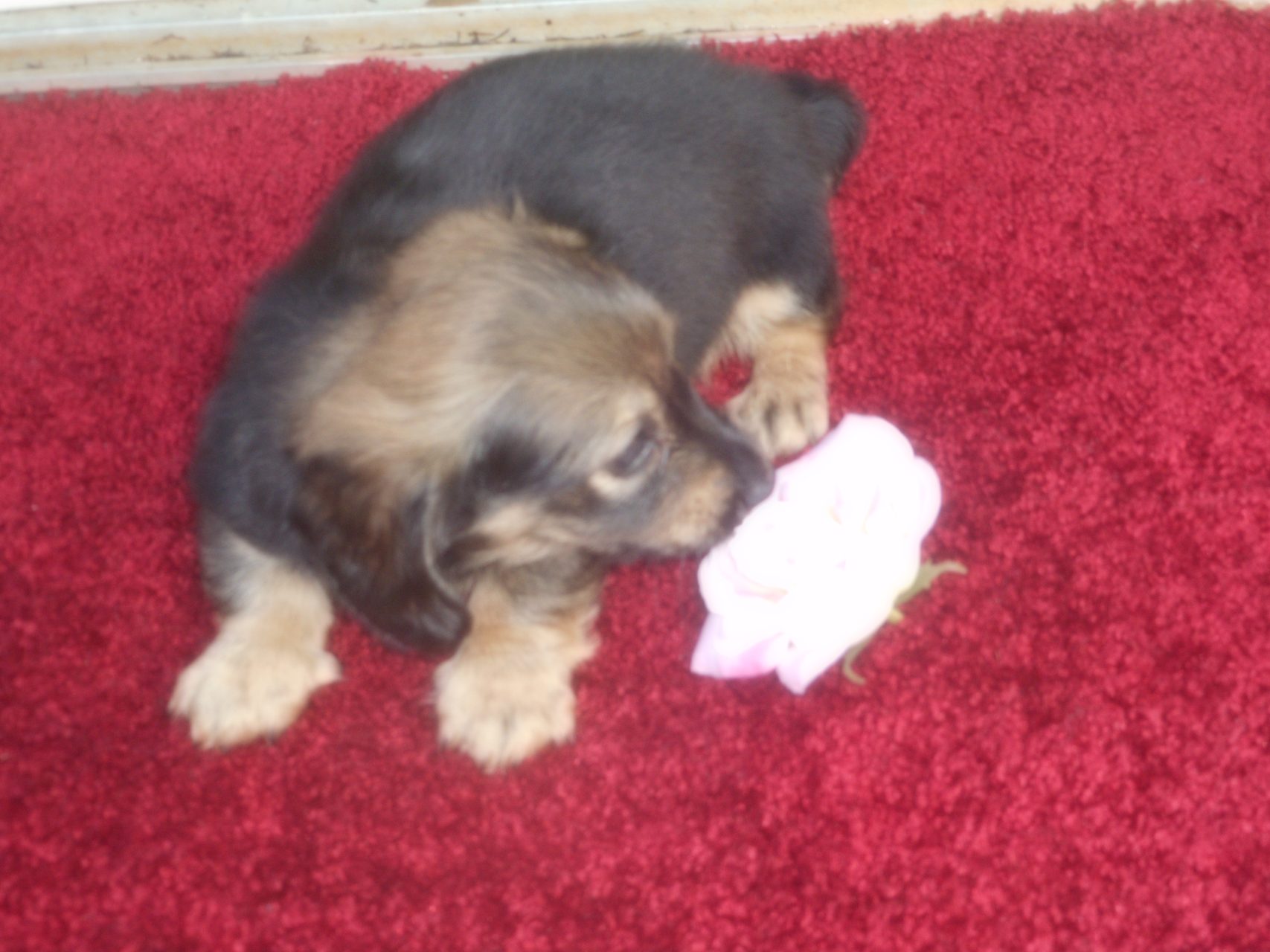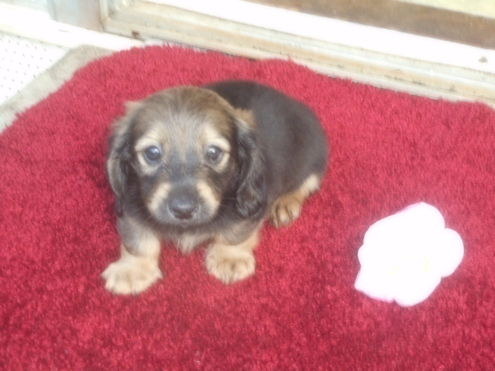 AKC and CKC Registered, Health Guarantee, with Full Breeding Rights, and is $1850. I also offer a One Year Health Guarantee if you continue her on the Nu-Vet Plus. You can order them right off my website. Her Mom, Lady, is a Longhair Shaded Red, weighing about 11lbs. Her Dad, Levi, is a Longhair Isabella and Cream, weighing about 11lbs. This precious baby has Chocolate in the Black and Cream, which makes her very unusual. This sweet baby will most definitely grow into a Gorgeous Dog.