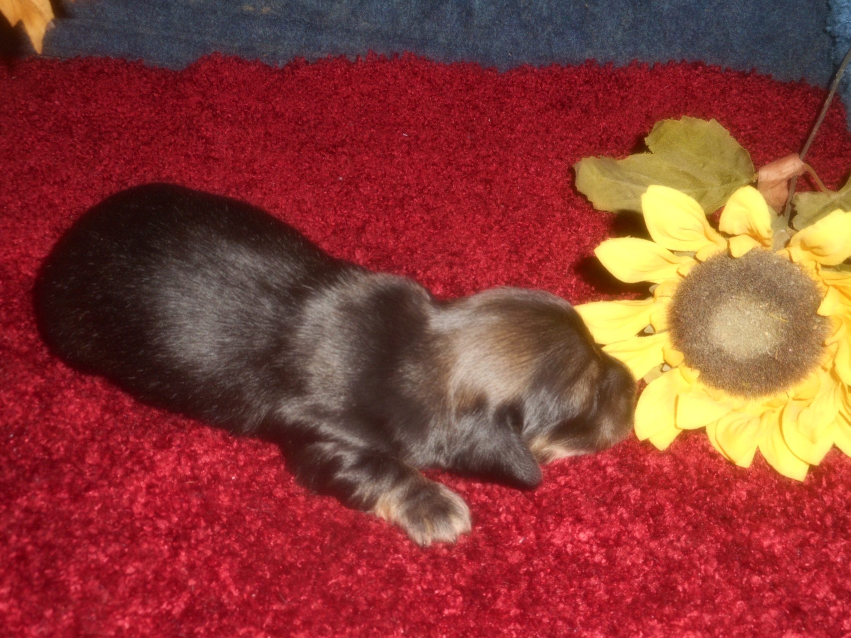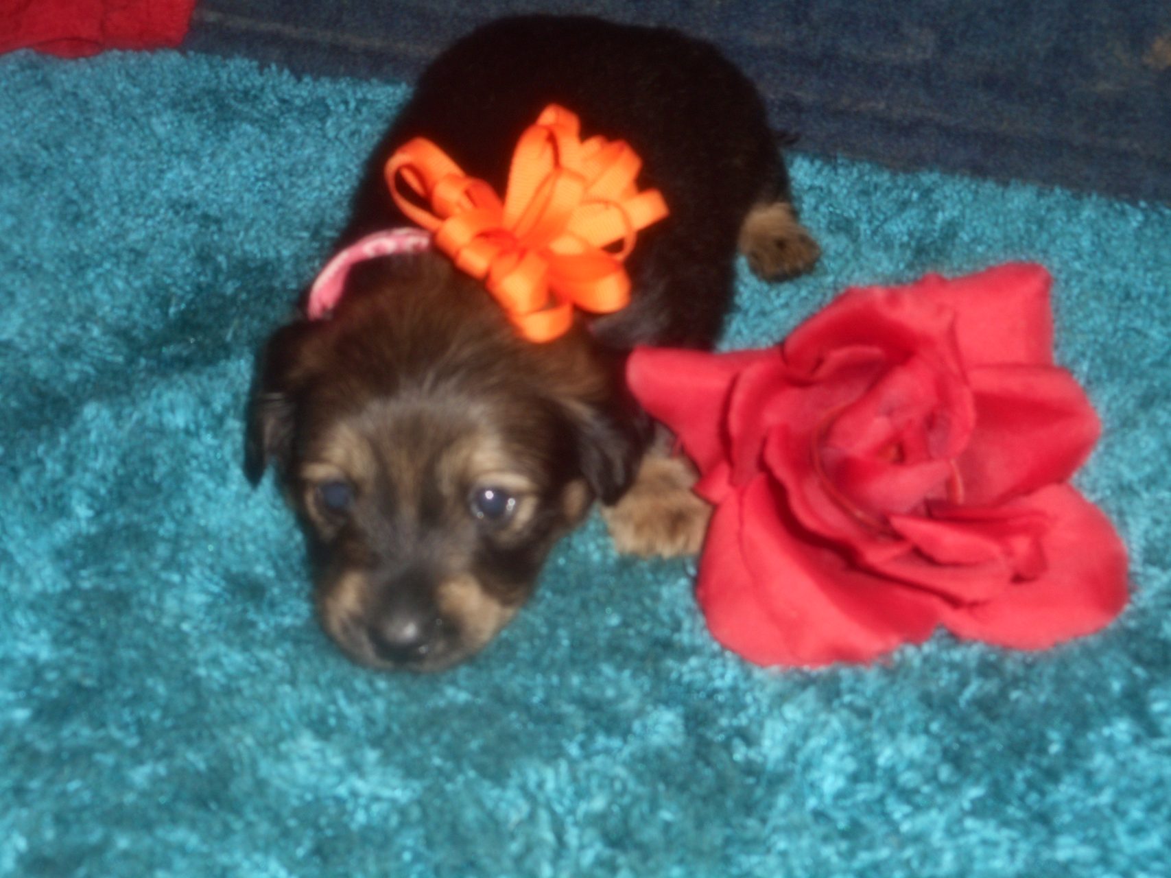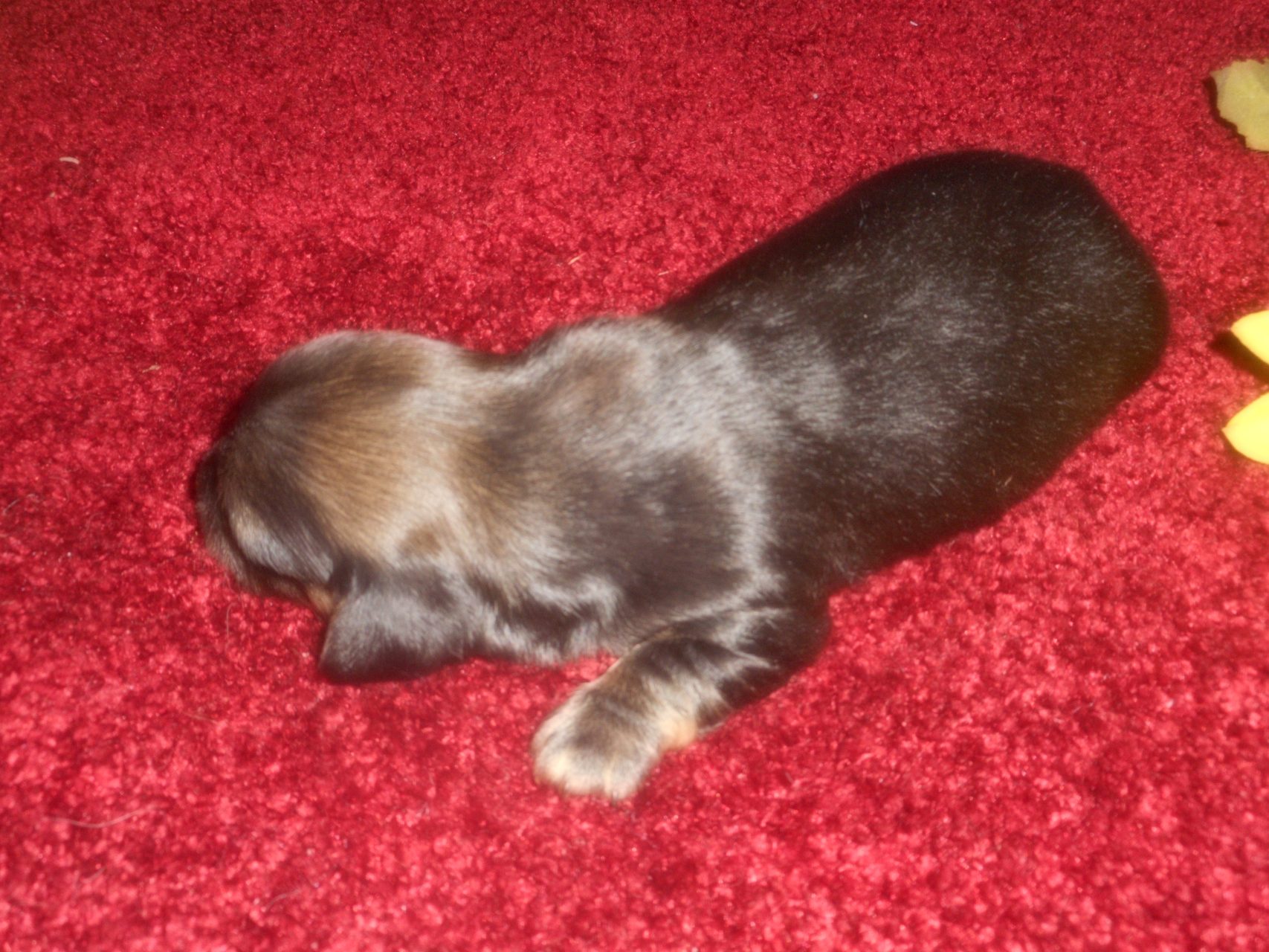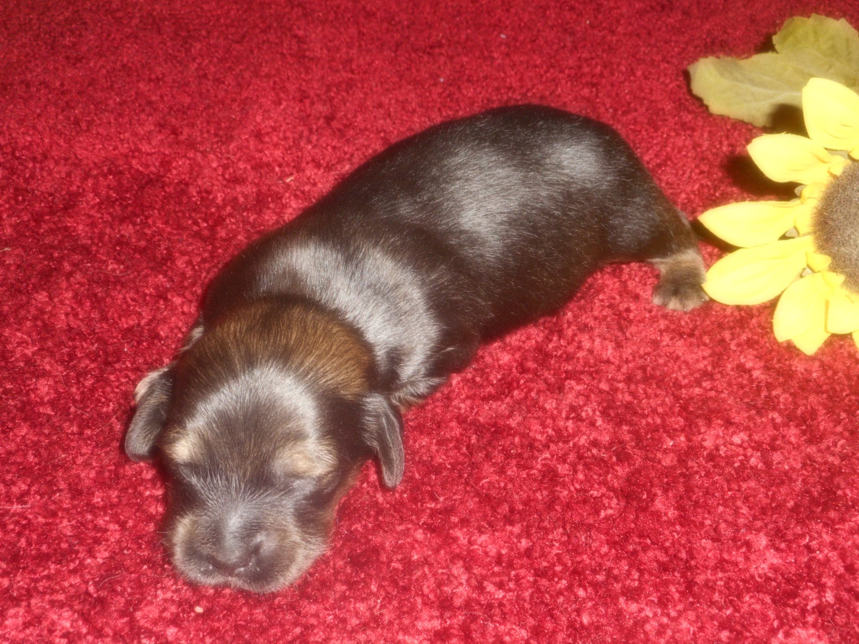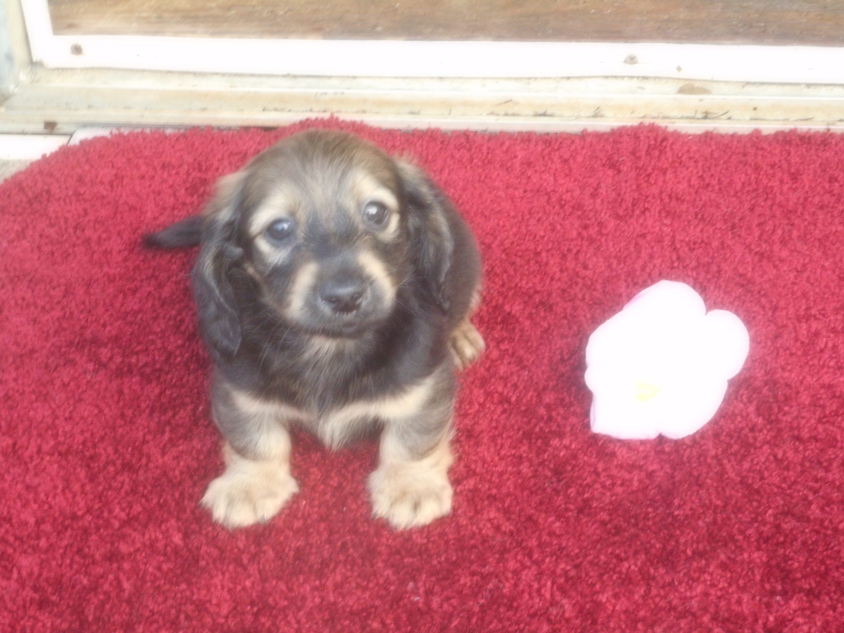 AKC and CKC Registered, Health Guarantee, with Full Breeding Rights, and is $1850. I also offer a One Year Health Guarantee if you continue her on the Nu-Vet Plus. You can order them right off my website. Her Mom, Lady, is a Longhair Shaded Red, weighing about 11lbs. Her Dad, Levi, is a Longhair Isabella and Cream, weighing about 11lbs. This precious baby has Chocolate in the Black and Cream, which makes her very unusual. This sweet baby will most definitely grow into a Gorgeous Dog.
