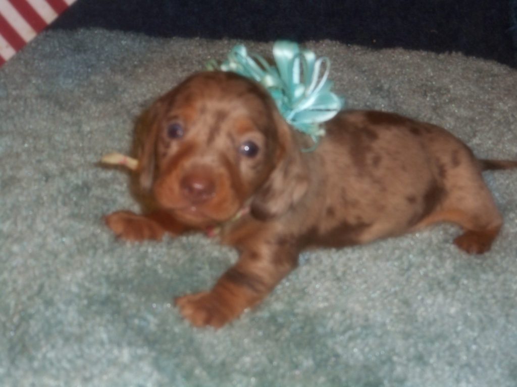 This beautiful little boy was born on 12-14-25 and can go home on 2-8-26. He is AKC and CKC Registered, Health Guaranteed, with Full Breeding Rights and is $2050. I also offer a One Year Health Guarantee if you continue him on the Nu-Vet Plus Vitamins he will be on when you pick him up. You can order them right off my website under Future Mothers. Also, be sure you put the code in. The Mom, Sugar, is a Short Hair Isabella and Tan Dapple, weighing about 11lbs. His Dad, Levi, is a Longhair Isabella and Cream, weighing about 11lbs. This precious baby boy will definitely grow into a Gorgeous Dog. He has a blue eye and a green eye. So pretty and handsome.
